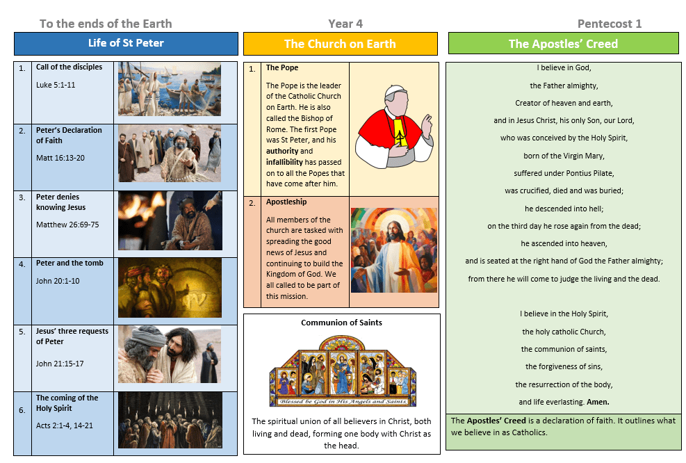 Pupils encounter the Apostles’ Creed, explore what it means to be apostolic, and learn about the structure of the Church and the communion of saints, including Mary’s special place. Through discussion, creative work and reflection, children consider how Christians today live out Jesus’ mission with faith, service and hope.